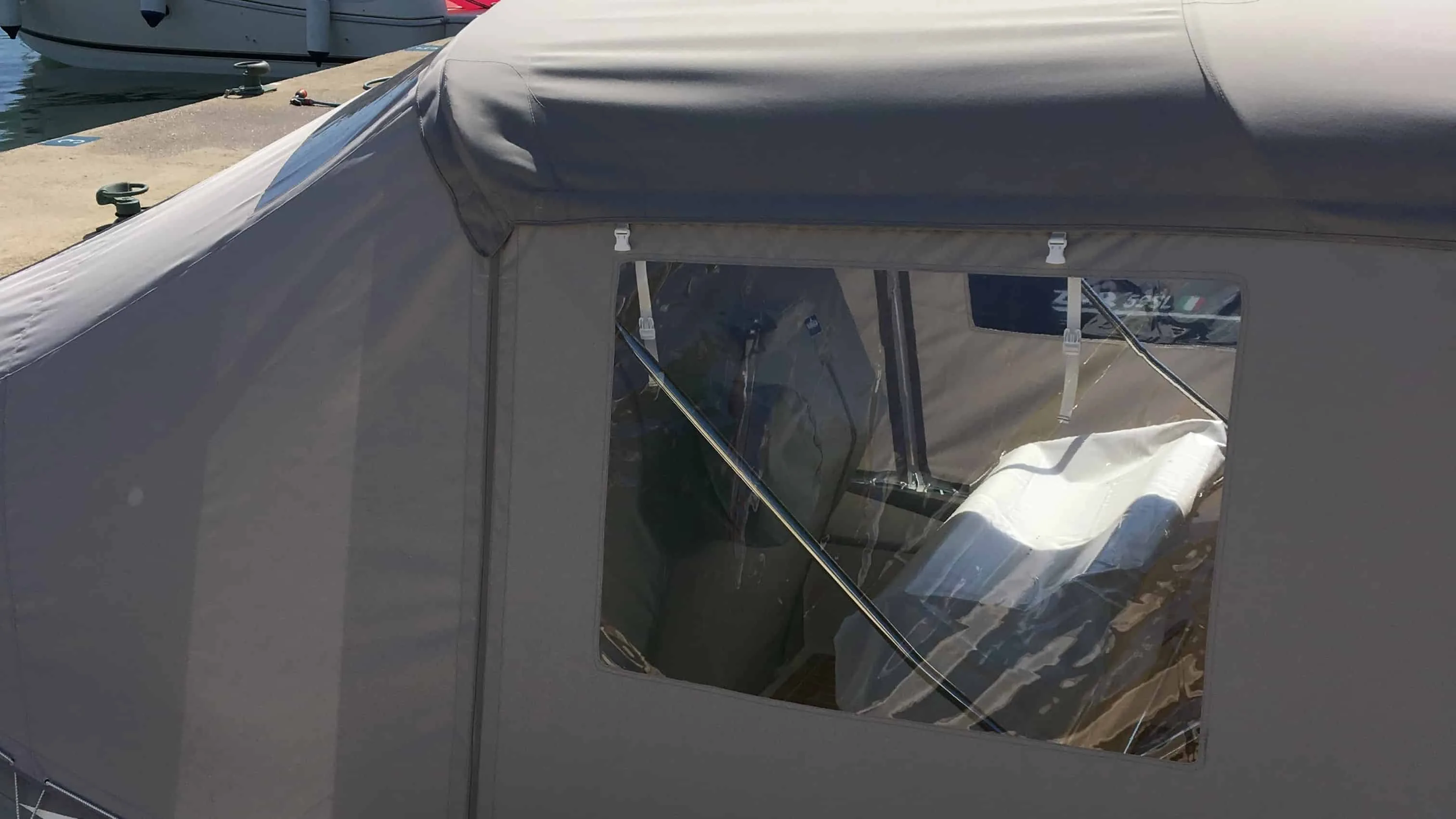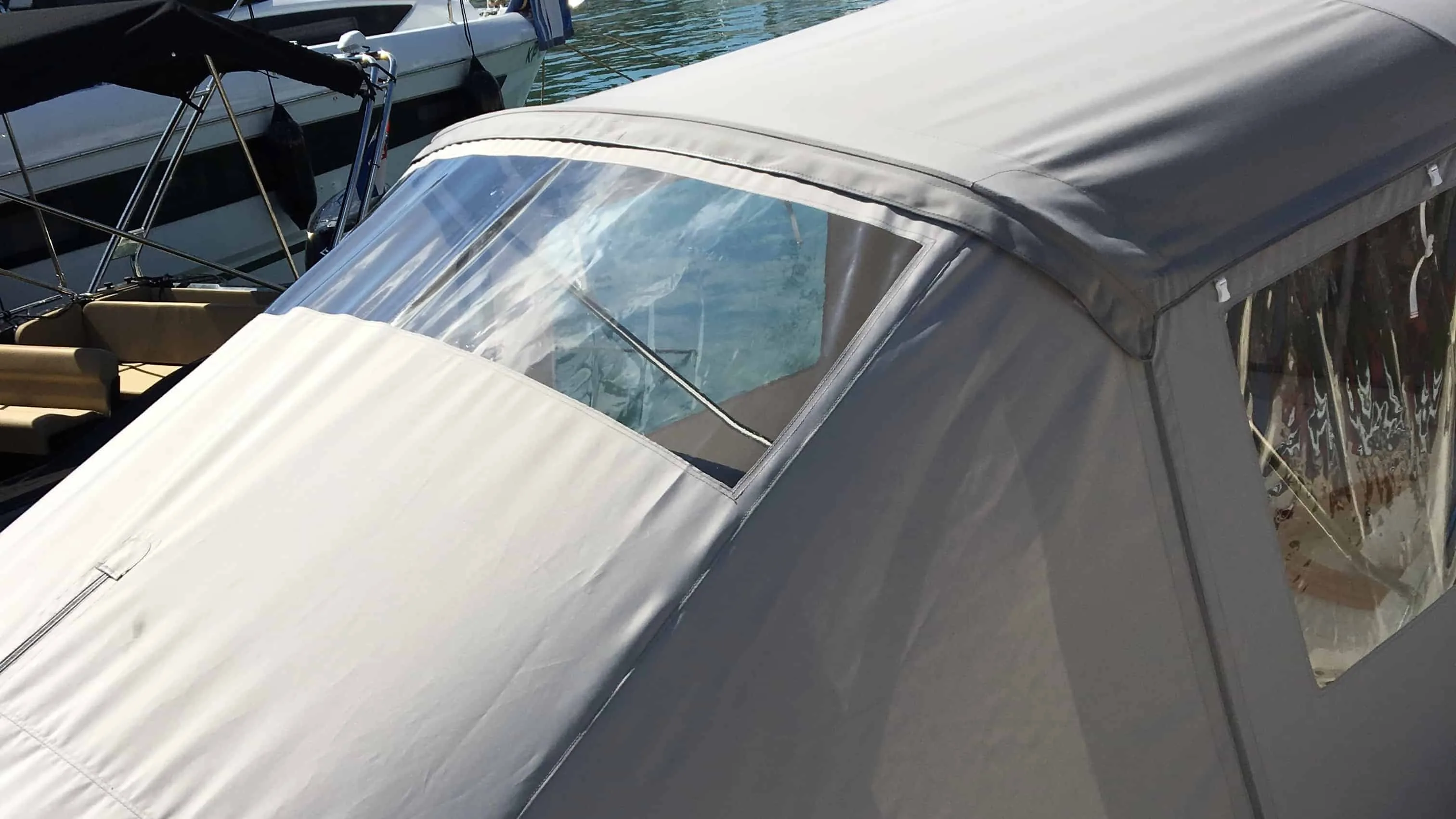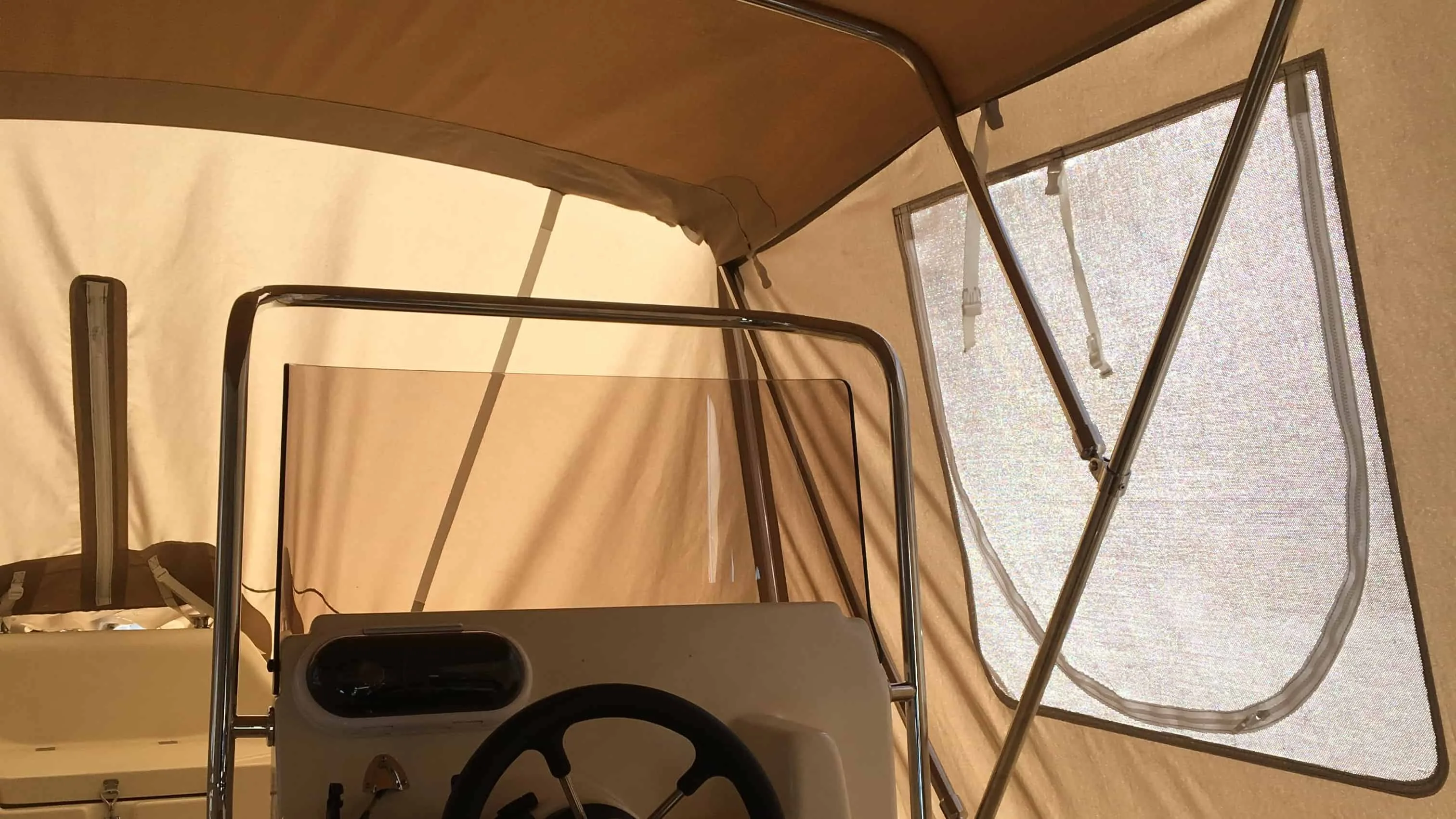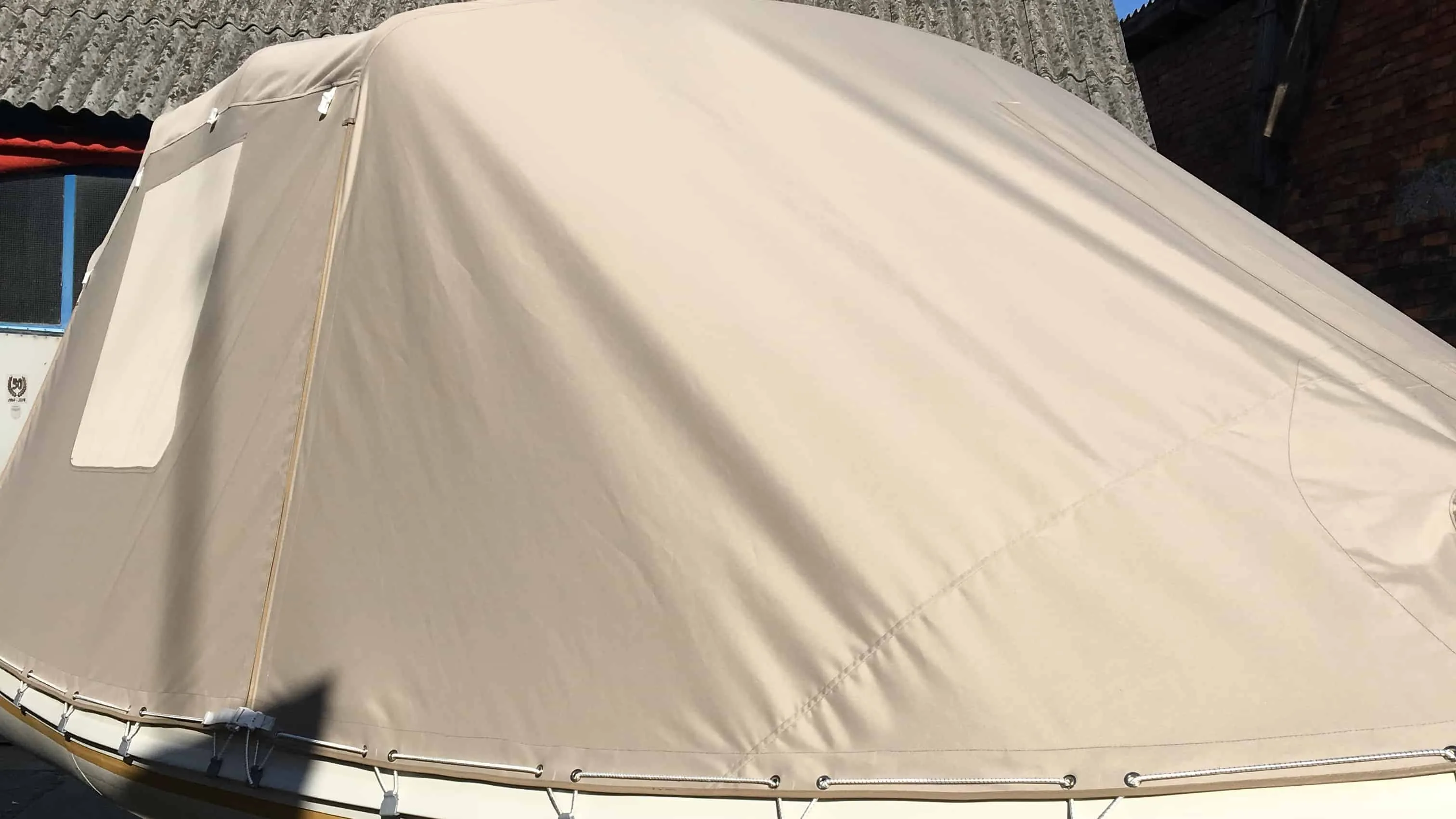 tent cover in Sunbrella Surlast material with PVC windows that have the possibility of rolling