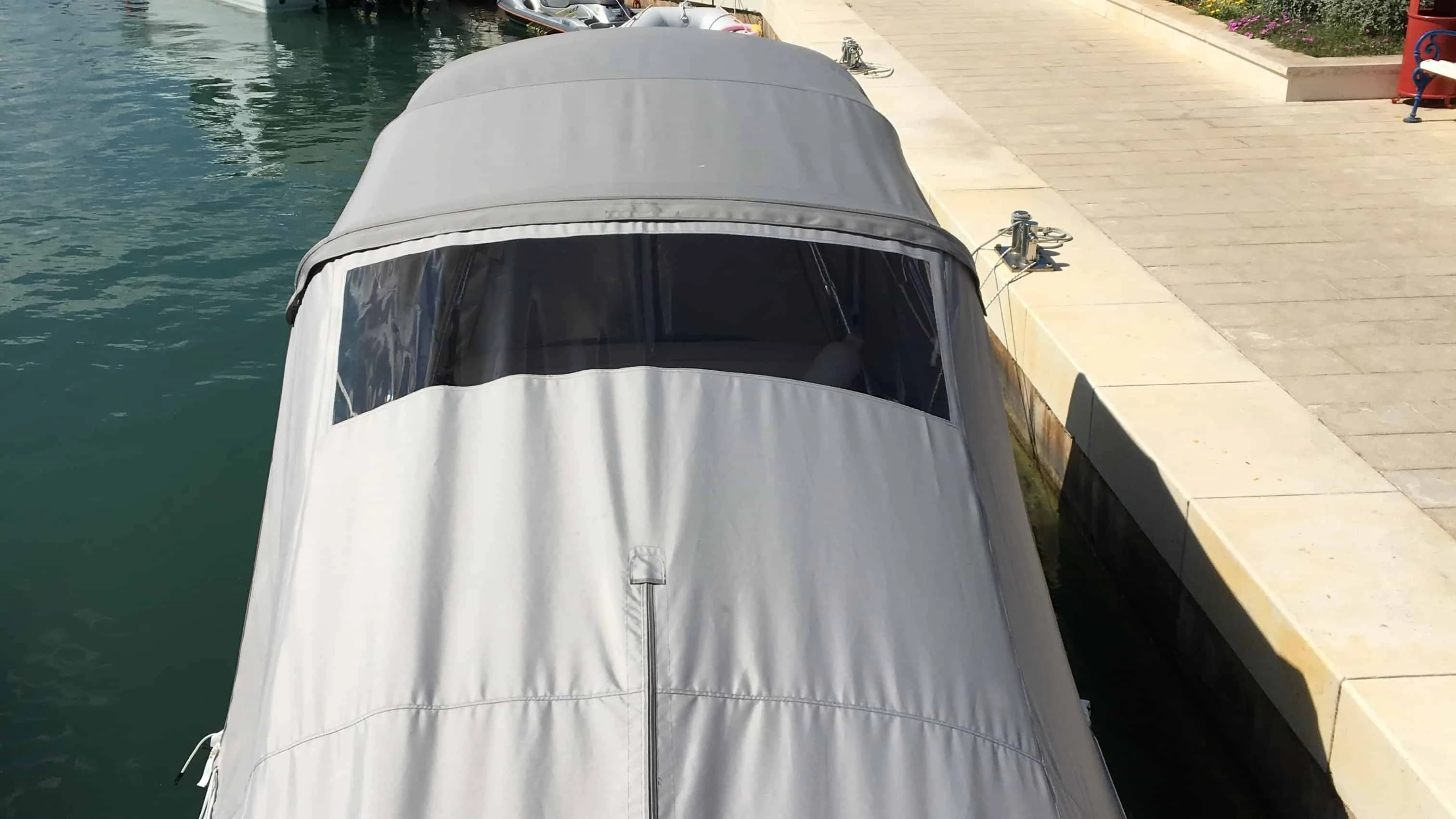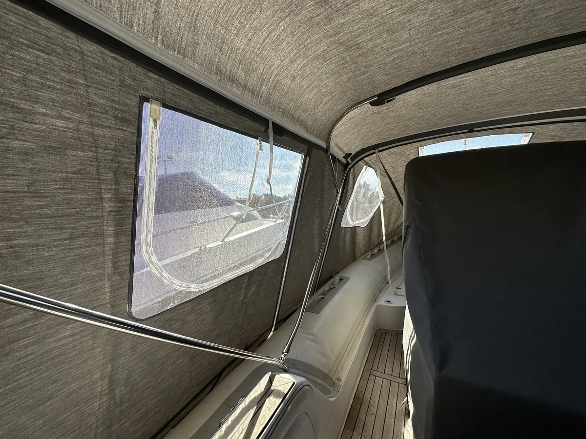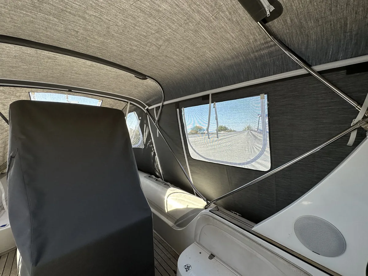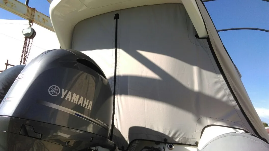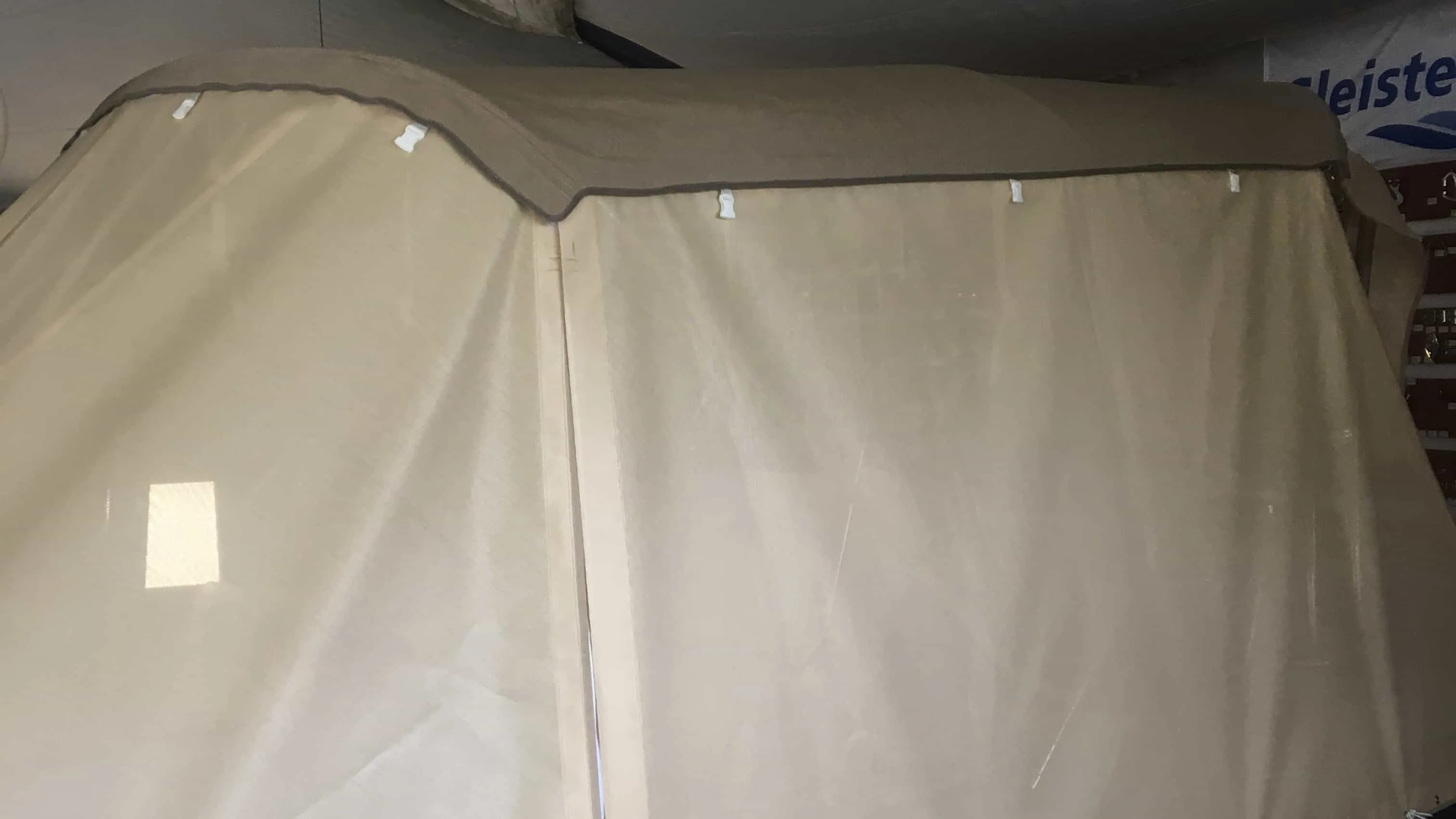 tent cover in Sunbrella Surlast material with PVC windows that have the possibility of rolling