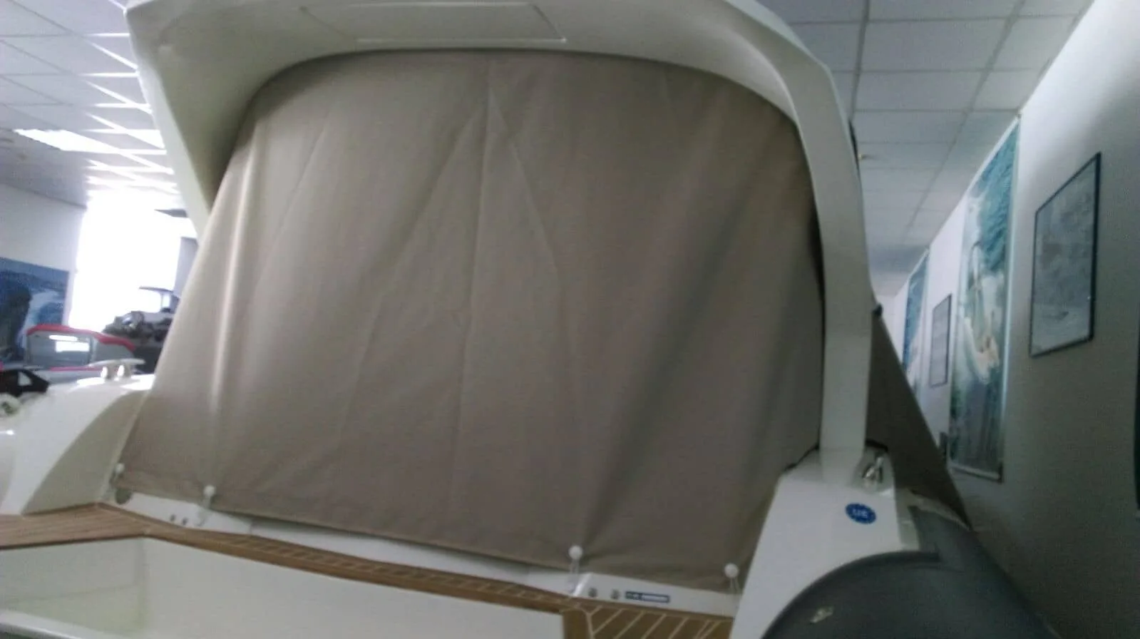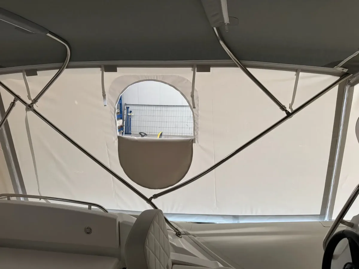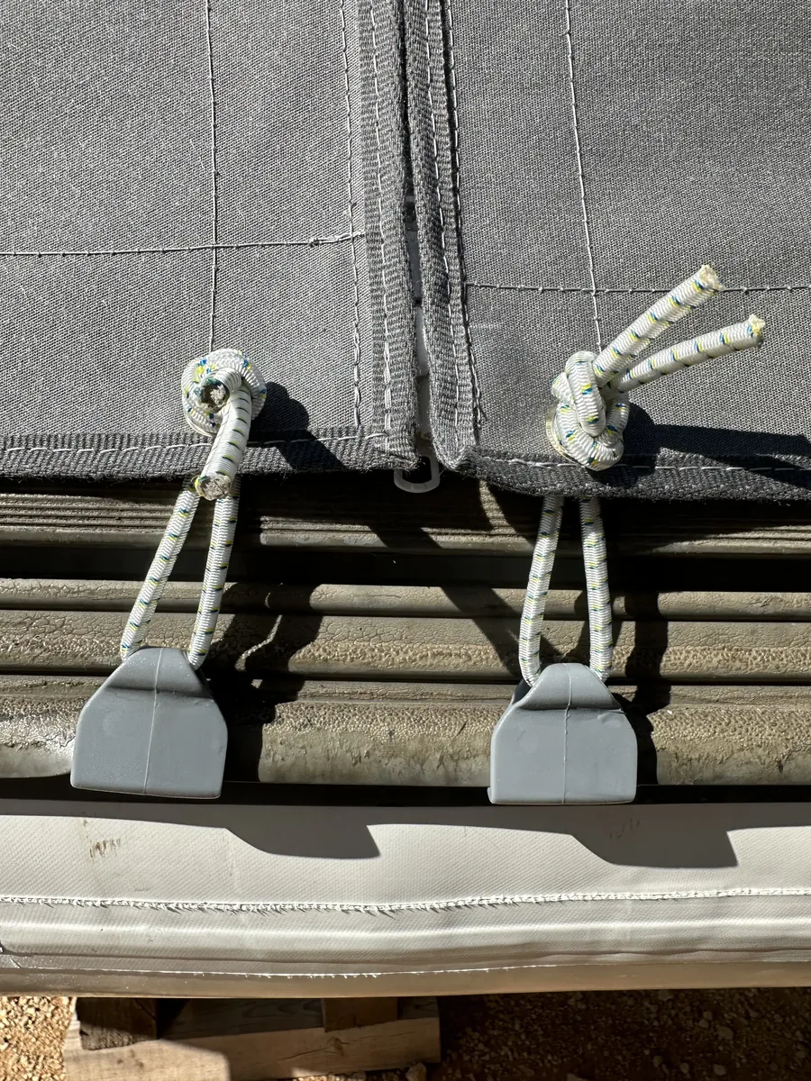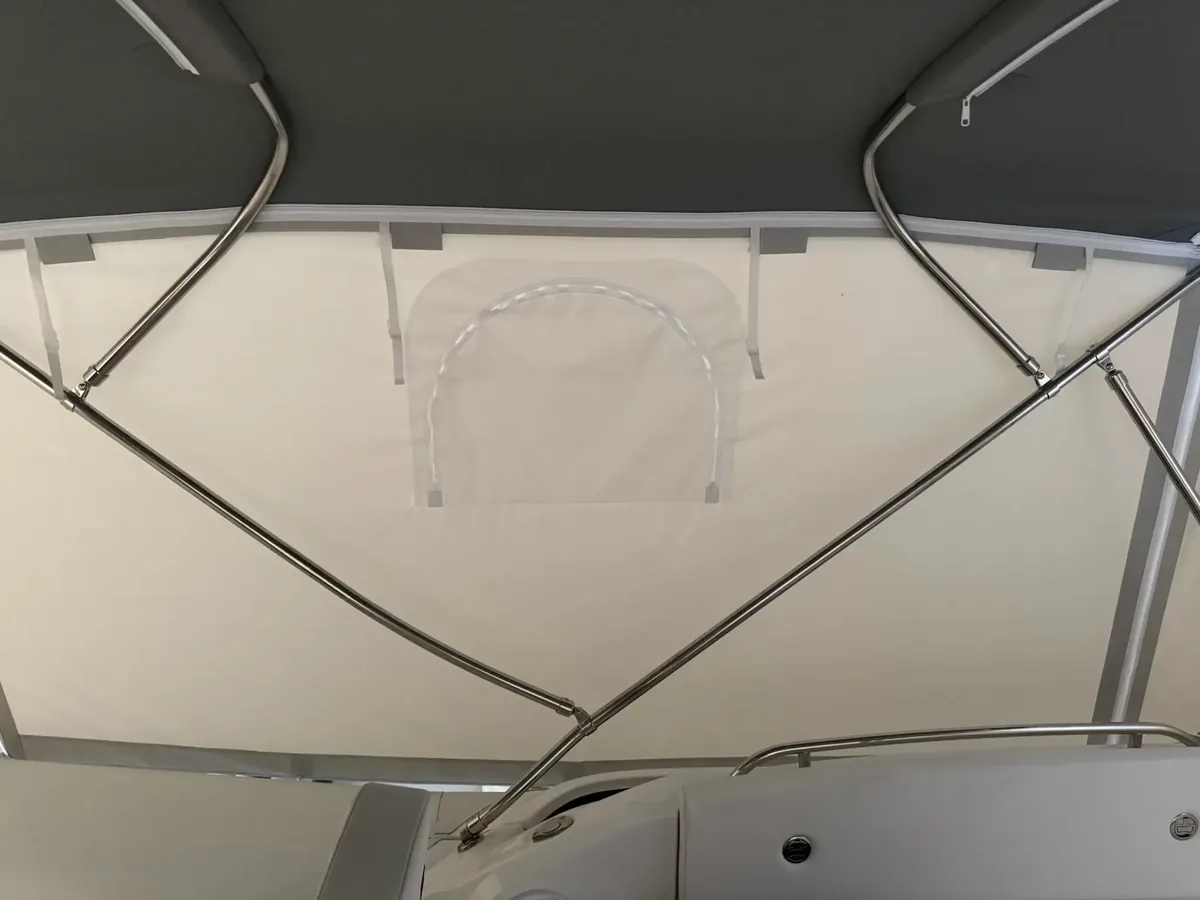 tent cover in Sunbrella Surlast material with PVC windows that have the possibility of rolling