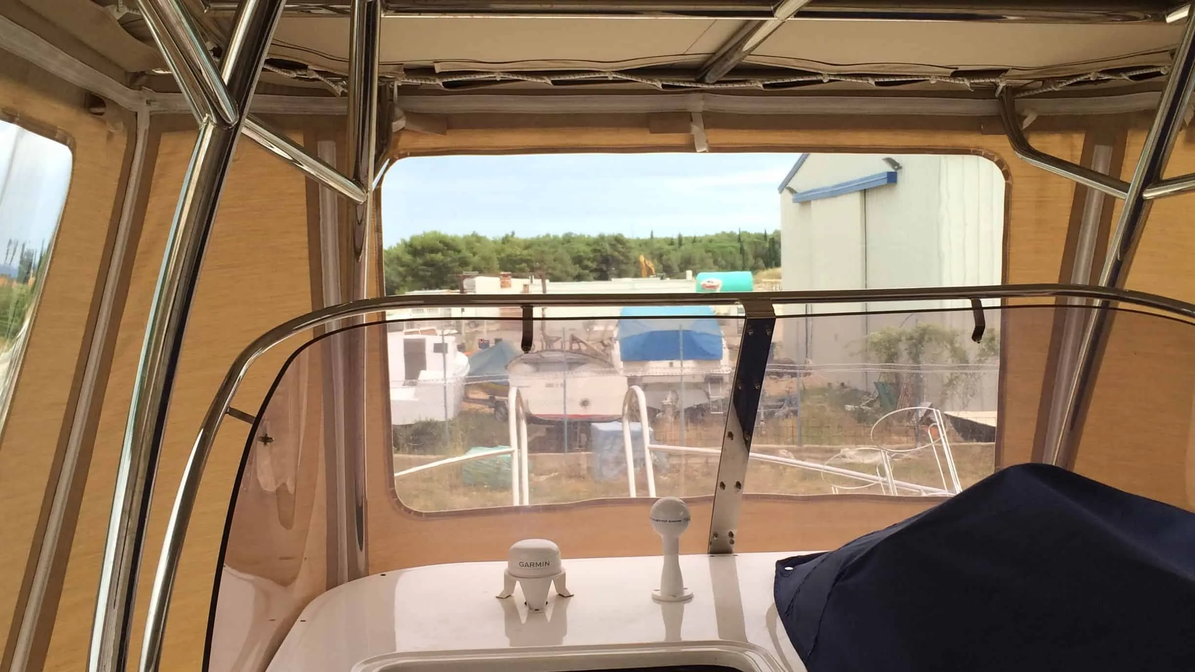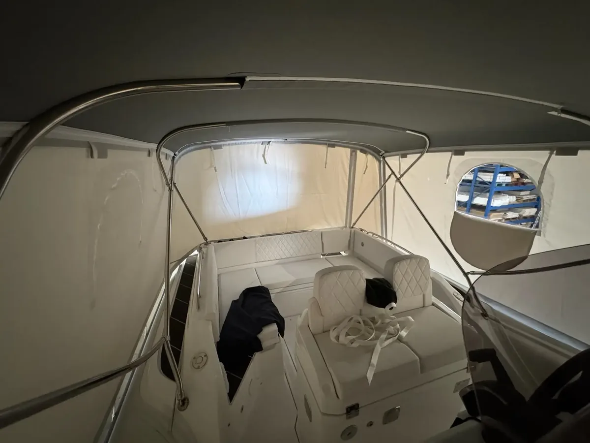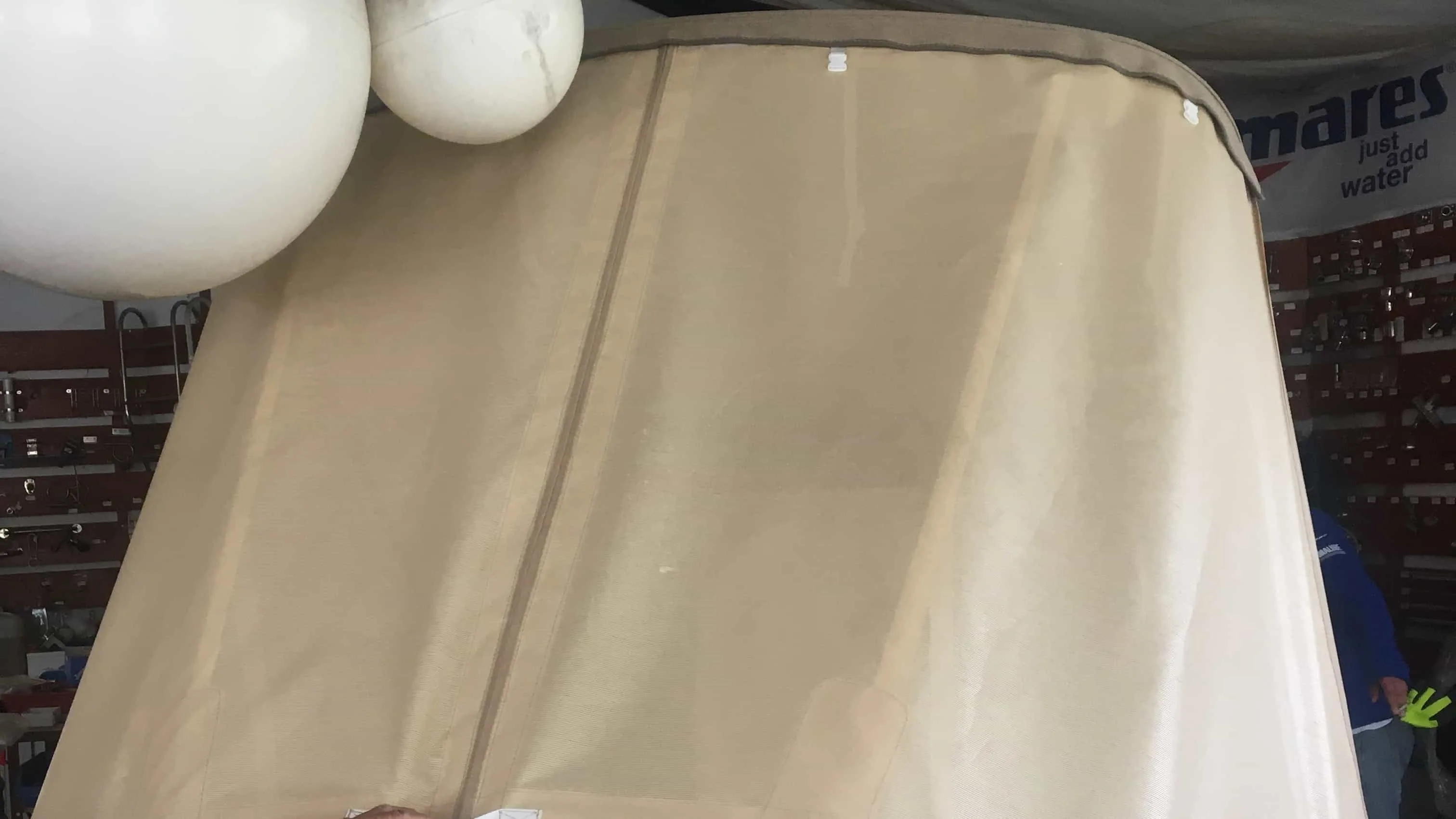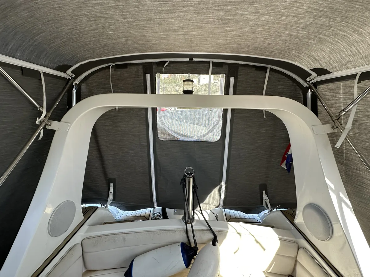 tent cover in Sunbrella Surlast material with PVC windows that have the possibility of rolling