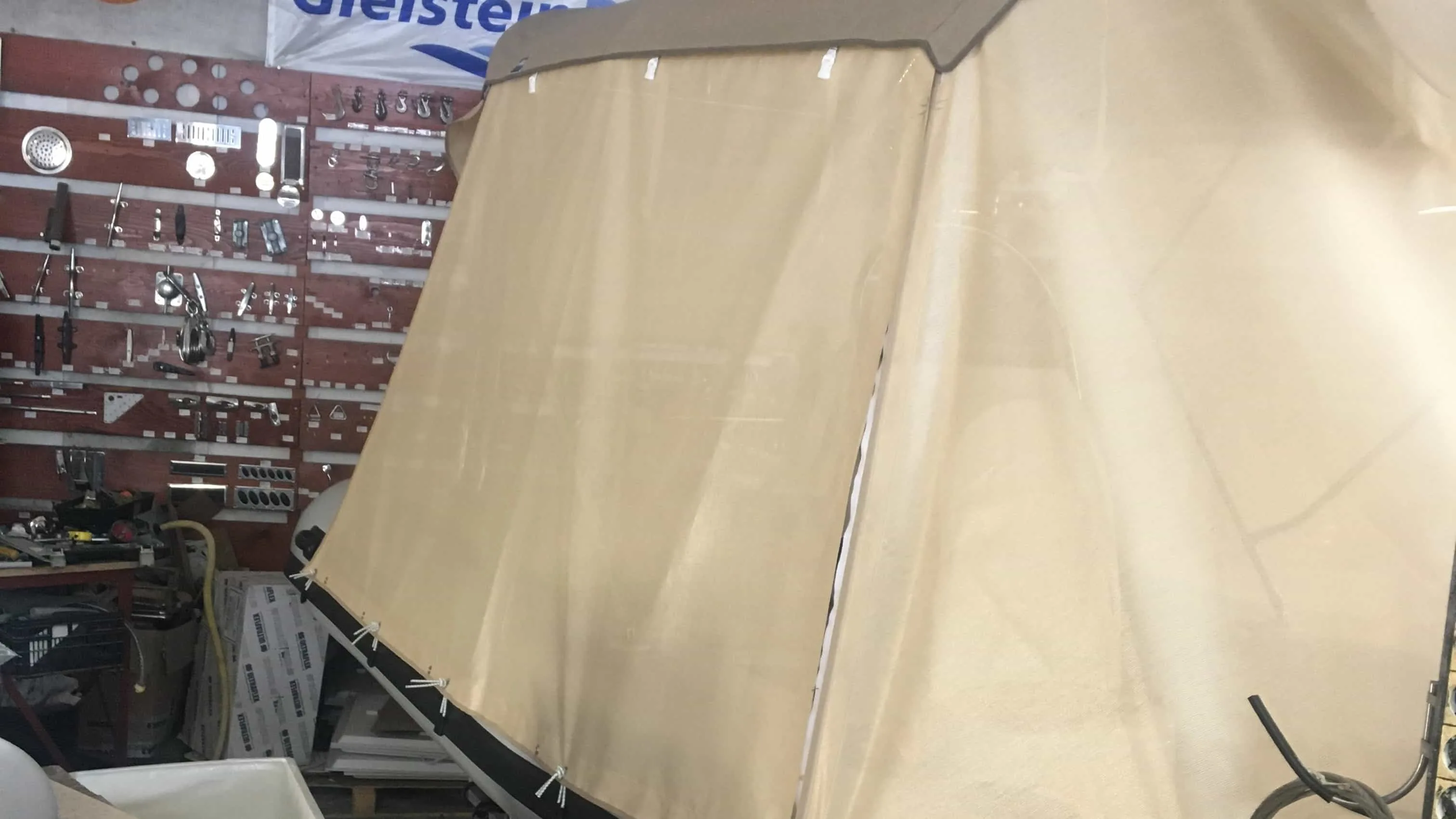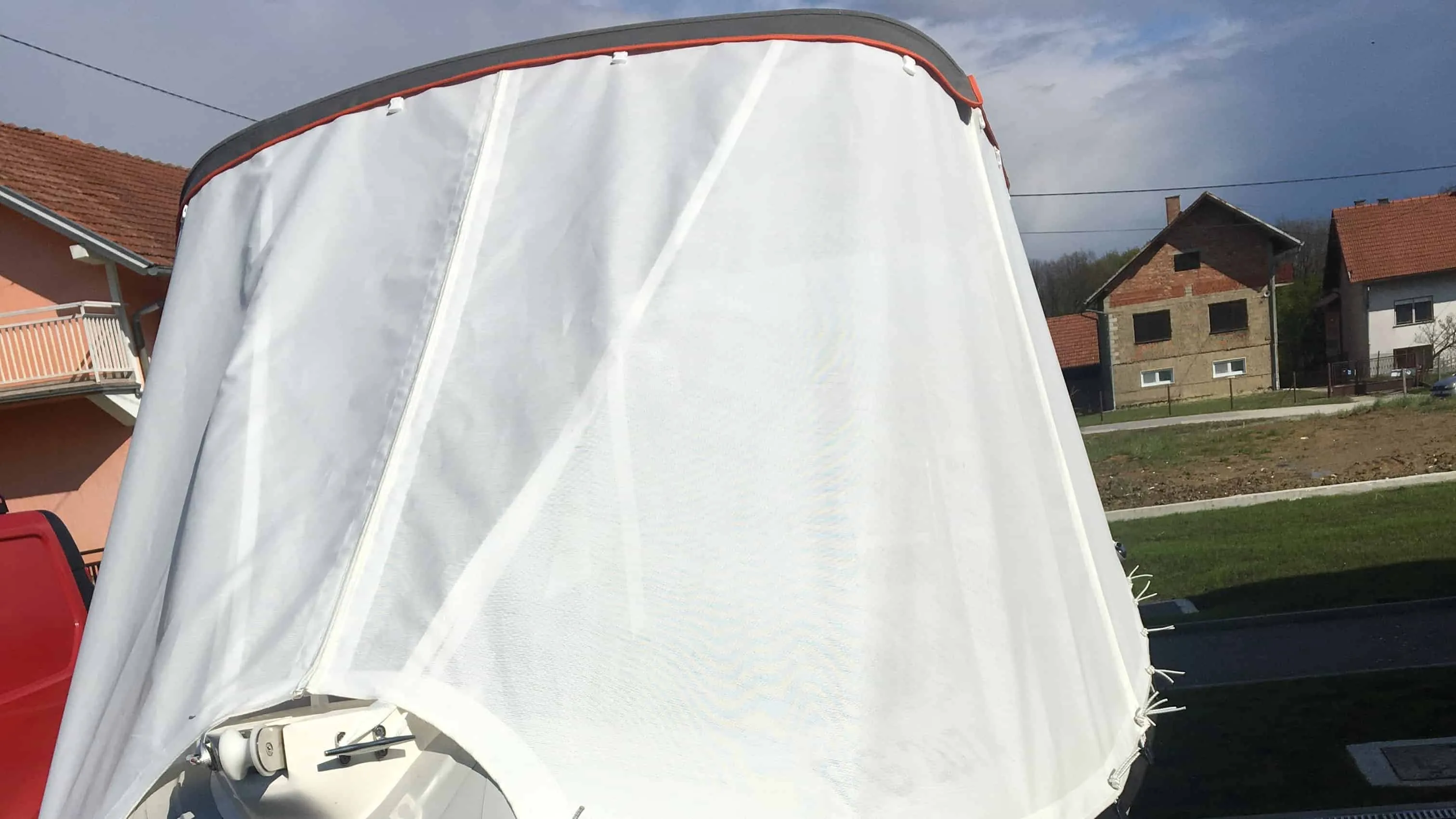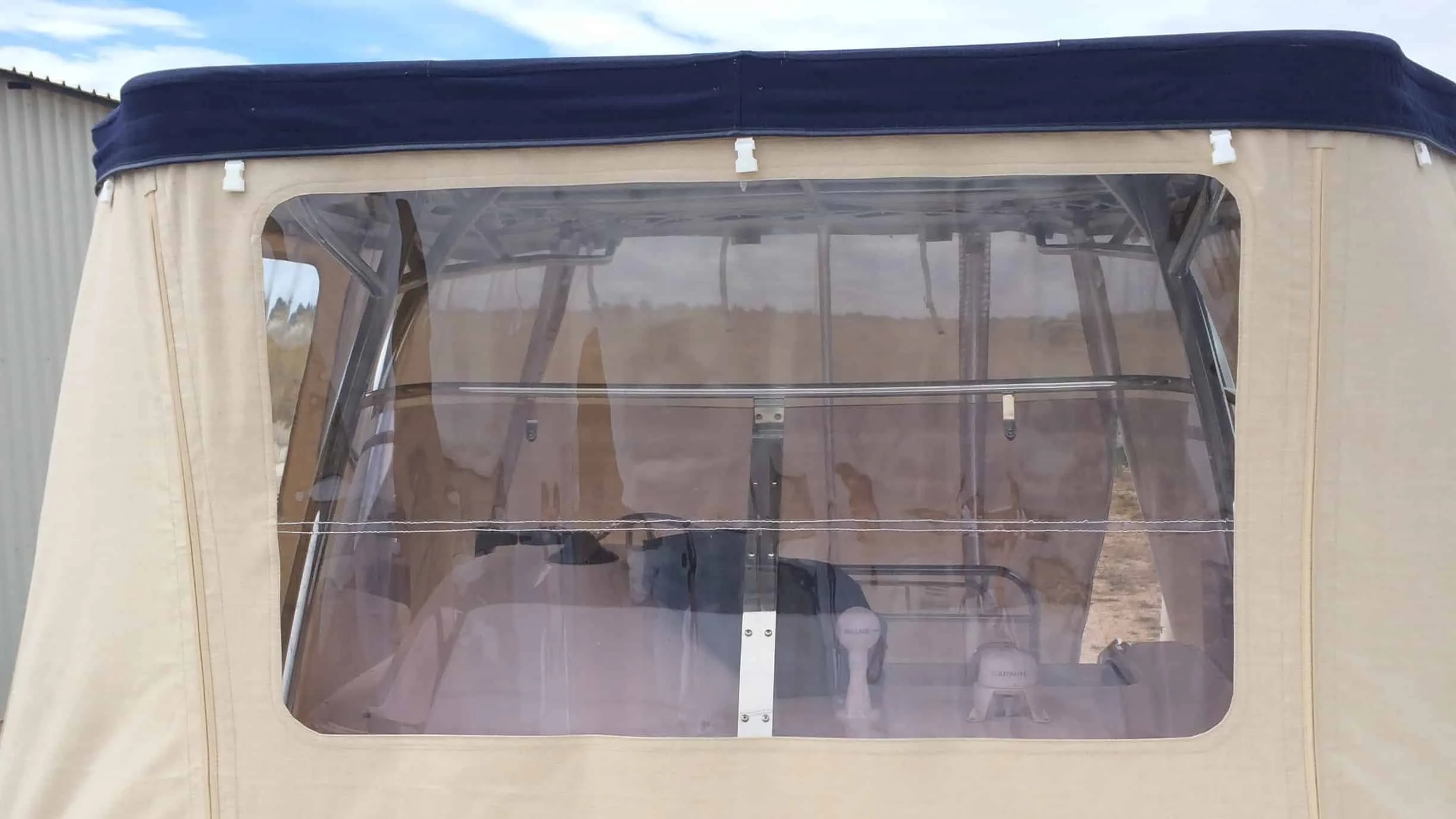 tent cover in Sunbrella Surlast material with PVC windows