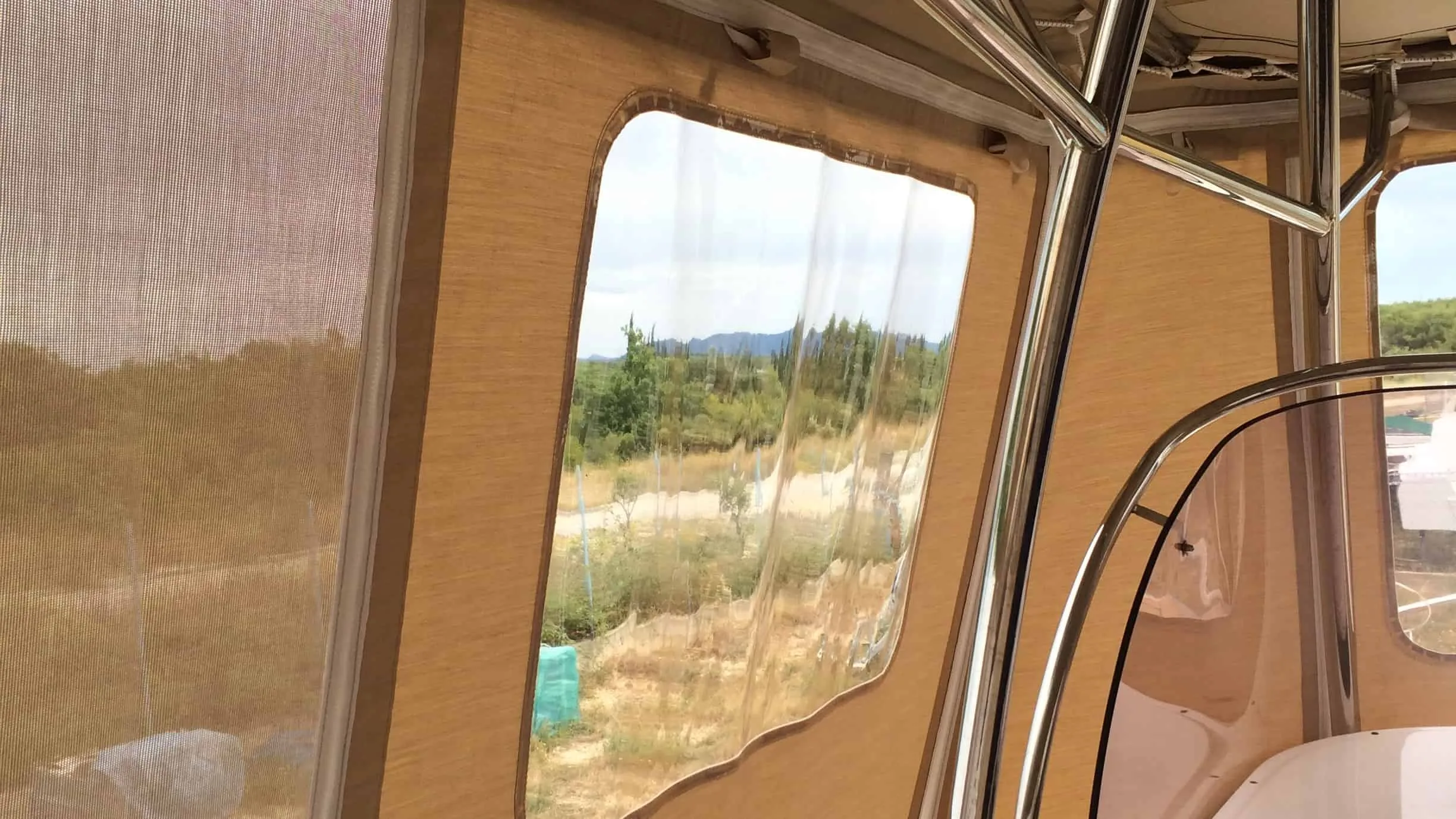 tent cover in Sunbrella Surlast material with PVC windows that have the possibility of rolling and integrated mosquito nets