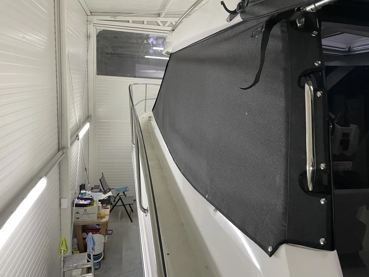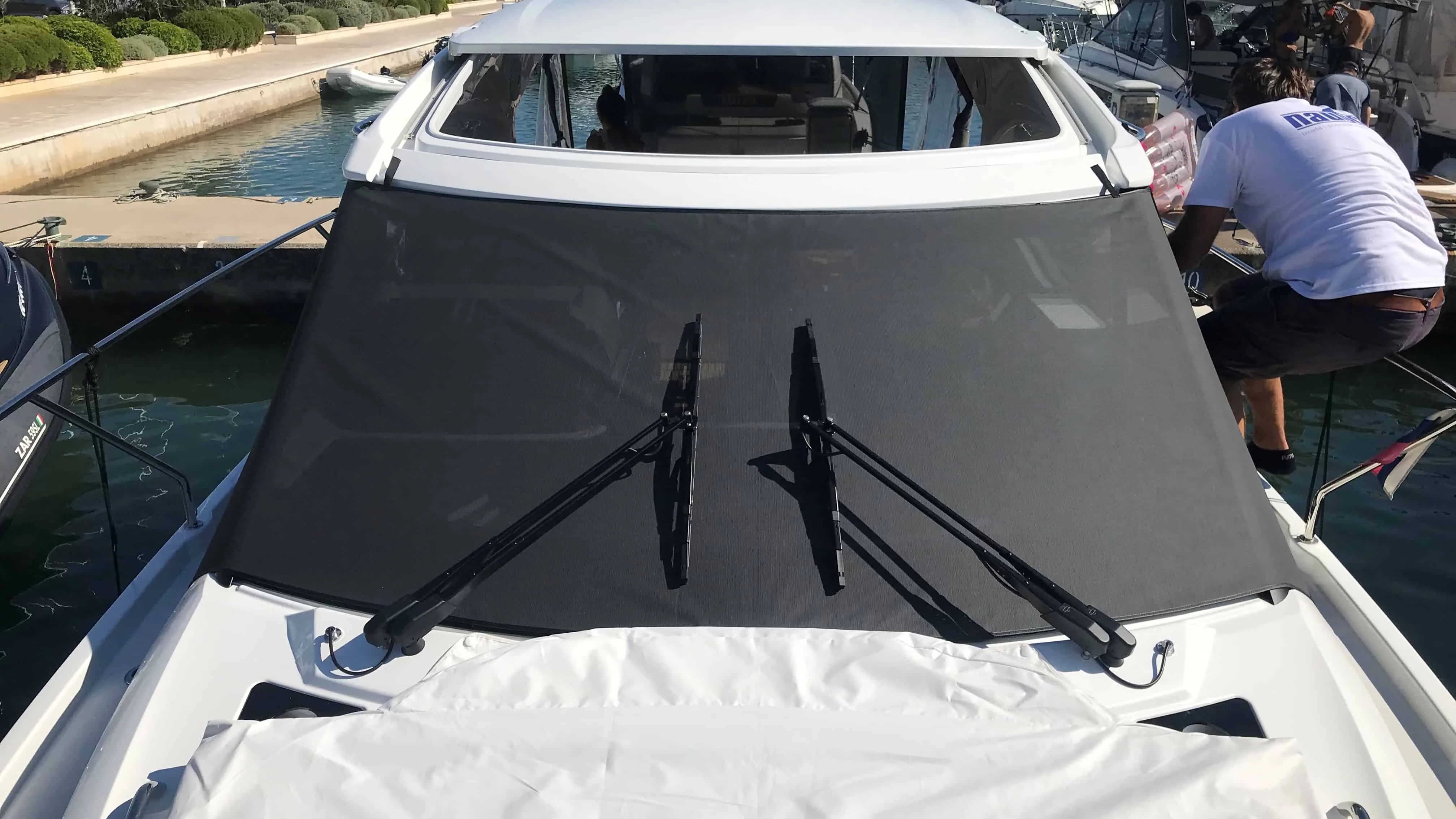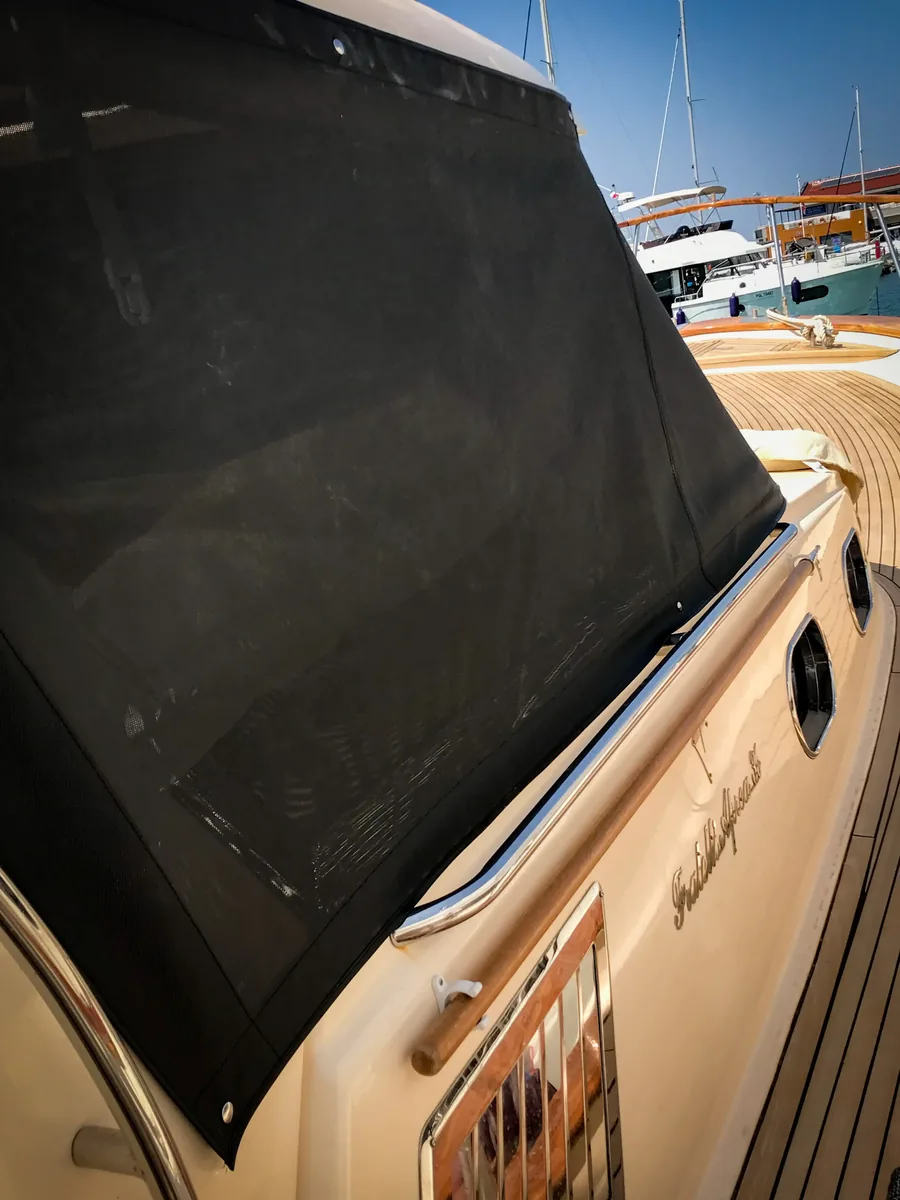 The windshield shadows have a dual purpose. On the one hand, they give you a feeling of privacy during your stay on the boat, and on the other hand, they protect the interior of your boat from the effects of harmful UV rays.